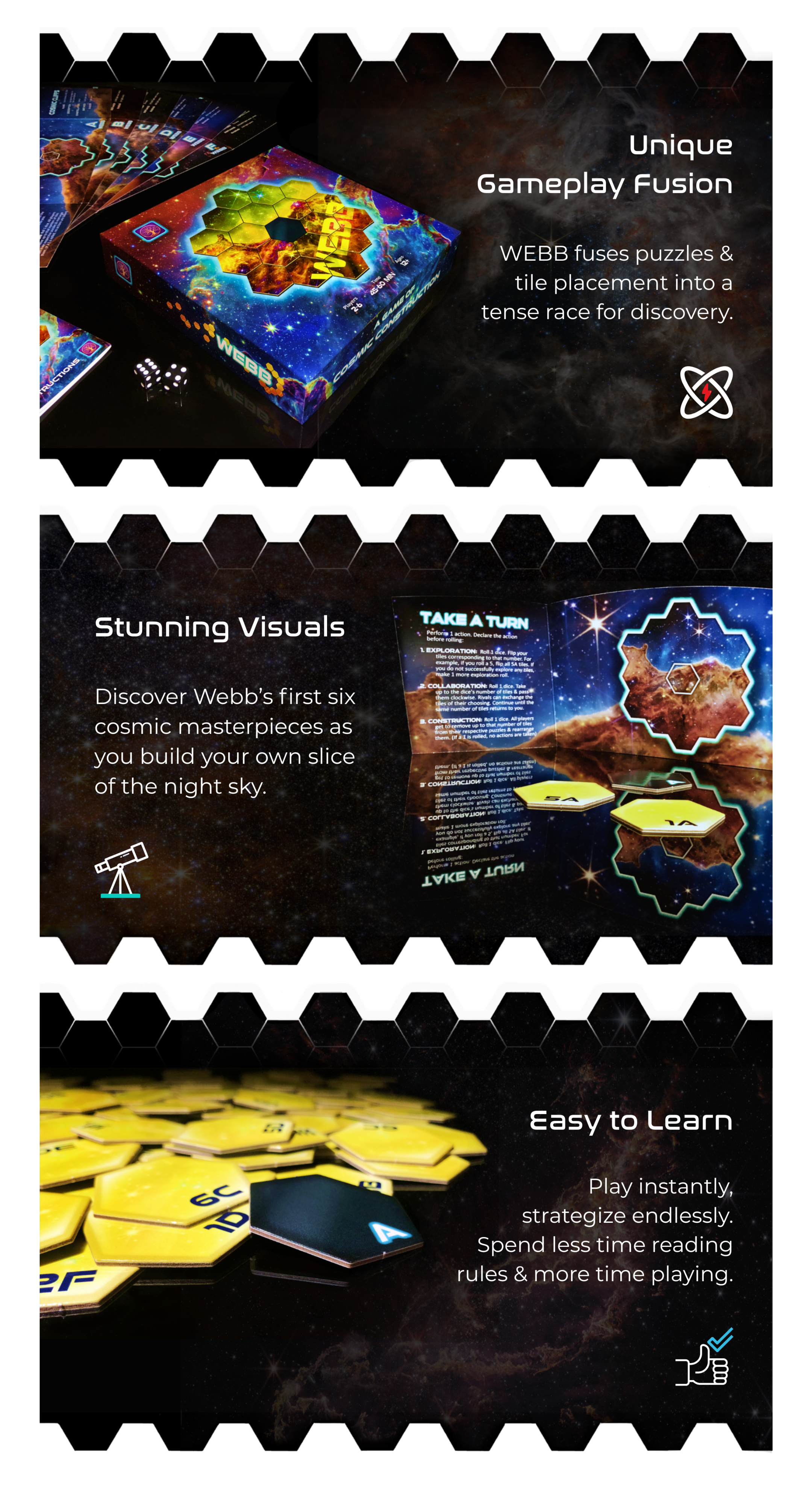 In WEBB, players visually and competitively solve their puzzles by arranging their tiles. If spending time with some of the most stunning cosmic images brought to humanity isn’t your thing, you WEBB may not be right for you.